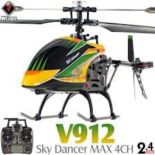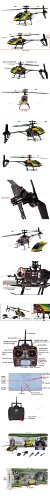 Here is an economical unit you can fly inside as well as outside. The Large Metal Gyro RC Helicopter has a single rotor which enables you to fly faster and be more agile in the air. The gyro auto-stabilizes during flight. There is a 4 Channel 2.4GHz transmitter with LED screen which operates on six b AAb batteries (not included). The helicopter battery is a rechargeable 7.4V 800mAH Li-poly unit. With only a one hour charge you can fly for 6-8 minutes. You can control this chopper from up to 130 meters. Should you have an unexpected sudden stop either outdoors or indoors, this model comes with a spare main blades and tail blade. It may have only a single rotor but it can still fly left and right, forward and backward, upward or downward and side-to-side. This is a very economical RC helicopter which will give you hours and hours of enjoyment. Features 4 Channel 2.4GHz transmitter Gyro auto stabilizes during flight Single rotor will enable you to fly faster and be more agile in the air For indoor use, but the single rotor design also enables you to fly outdoors Specifications: Functions: left/right, forward/backward, upward/downward, side-to-side Charging time: About 60 minutes Flying time: About 6-8 minutes Controlling distance: About 130 meters Product Size: 16 x 3.25 x 6.25 Helicopter Battery: 7.4V 800mAH Li-poly Includes: 4Ch V912 Single Rotor Helicopter 2.4Ghz Remote Control with LCD screen Charging adapter Spare Main Blades and Tail Blade 7.4V 800mAH LiPo Battery Instruction Manual Required (6) AA batteries for Transmitter (not included)