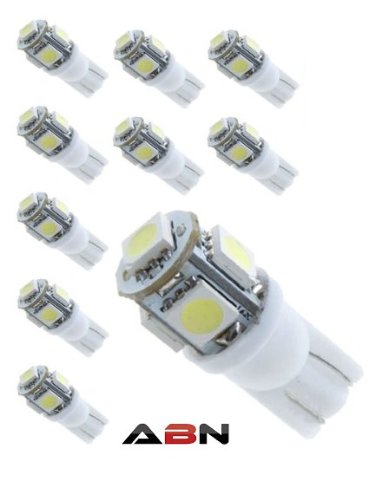 Each T10 LED bulb contains 5 Beautiful High Quality 5050 SMD LEDs (available in Xenon White, Ultra Blue, Green, And Yellow Amber), which are much brighter and colorful than the stock OEM yellowish tungsten lamps.