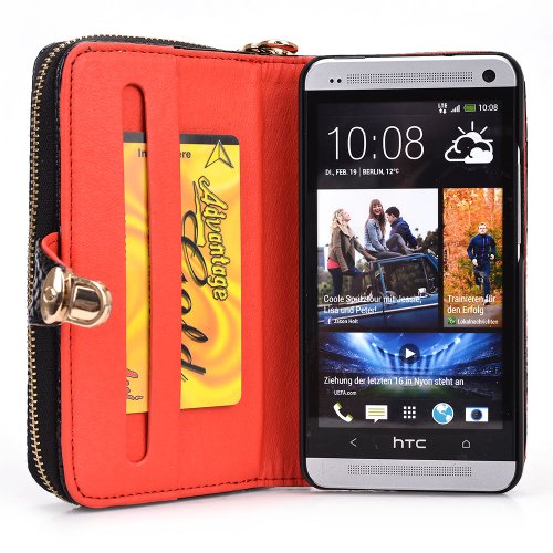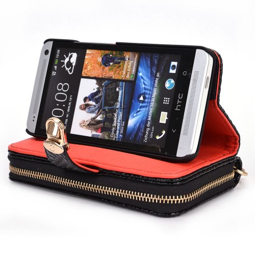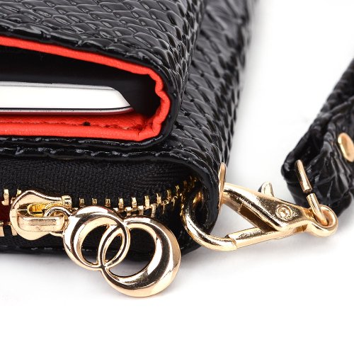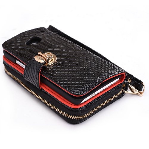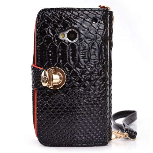 Kroo Multi-Use Smart Phone Wallet Case with Coin Pouch for HTC One - Black Croc