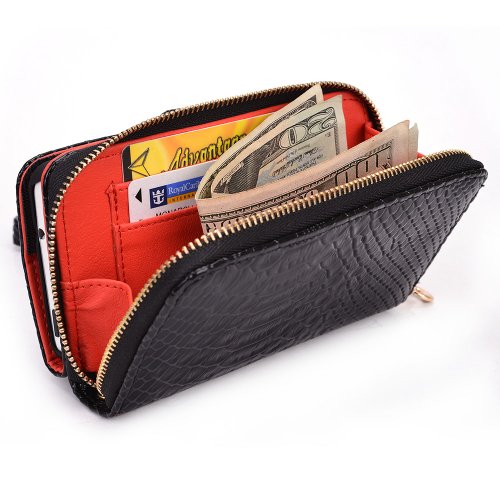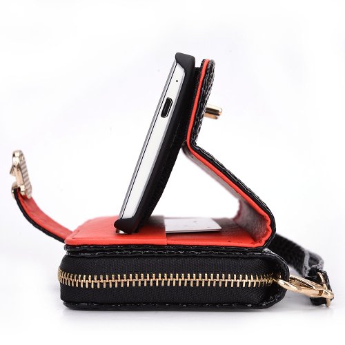The Kroo Wallet Geek Series is one of a kind. Cases are made from high-quality PU Leather. Wallet case features: Outer pouch with button clip to keep your phone secure, zipper side pouch with 2 card holder slots along with a smaller zipper pouch, removable case shell with built in stand feature, and a removable hand strap to keep your wallet case secure.