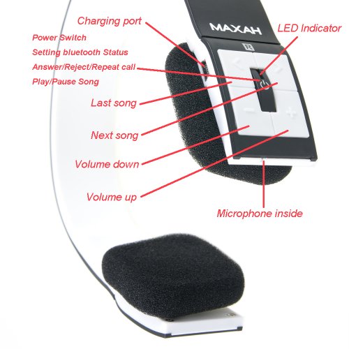 - Button funtion(as the picture):Power on/off,Setting Bluetooth,Answer/reject/repeat call,Play/Pause music,Last/next song,Volume up/down.