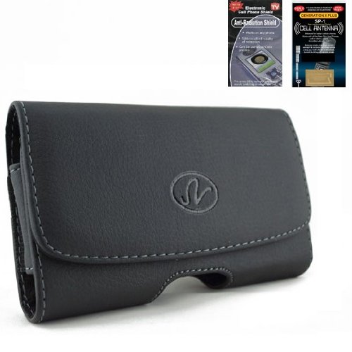 Samsung Galaxy Mega 6.3 Horizontal Leather Case with Magnetic closure with belt clip and belt loops + Cell Phone Antenna Booster and Anti Radiation Shield