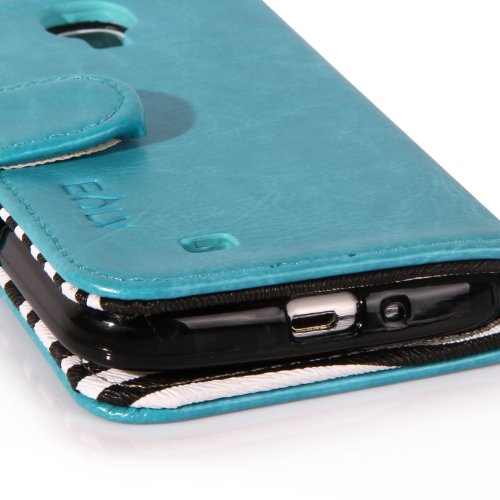 - Wallet-style case with inner zebra design and lanyard