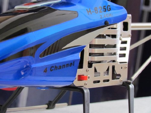 - Package Contents:1 x H-825G Helicopter w/ built-in 7.4v LiPo Rechargeable Battery, 1 x 2.4GHz Transmitter, 1 x Instructions Manual, 1 x Charger, 1 x Screwdriver, 2 x Spare Main Blades, 1 x Spare Tail Blade. Required: 8 x AA batteries for Transmitter